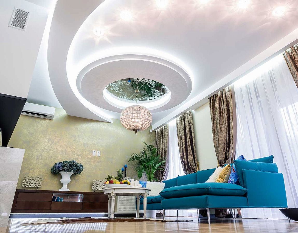 Изображения с 3D эффектом позволяют создать эффектную иллюзию объемного рисунка на натяжном потолке, орнамента или фотографии. Такой натяжной потолок способен зрительно расширить пространство, зонировать комнату, акцентировать внимание на конкретном элементе интерьера помещения. На этой странице мы расскажем об особенностях натяжных 3D-потолков, покажем фото, цены, несколько готовых решений.