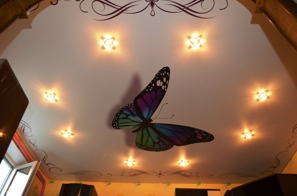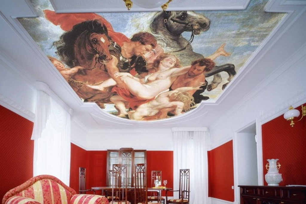 Арт-потолок может быть заказан как на всю площадь потолка, так и стать частью комбинированного потолка, украсив его центр.